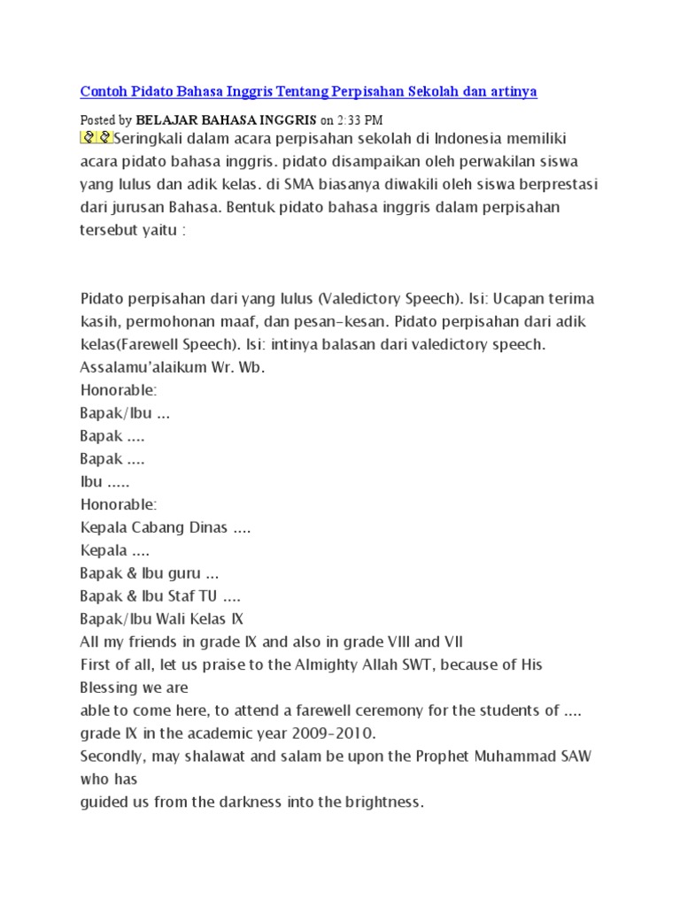 Contoh Pidato Bahasa Inggris Tentang Perpisahan Sekolah Dan