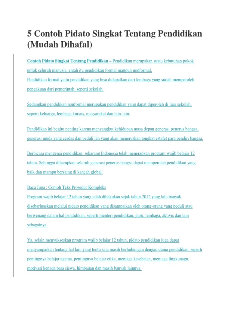 Contoh Pidato Singkat Tentang Pendidikan Pdf Course Hero